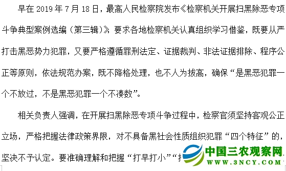 早在2019年7月18日,最高人民检察院发布《检察机关开展扫黑除恶专项斗争典型案例选编(第三辑)》,要求各地检察机关认真组织学习借鉴,既要从严打击黑恶势力犯罪,又要严格遵循罪刑法定、证据裁判、非法证据排除、程序公正等原则,依法规范办案,既不降格处理,也不人为拔高,确保“是黑恶犯罪一个不放过,不是黑恶犯罪一个不凑数”。