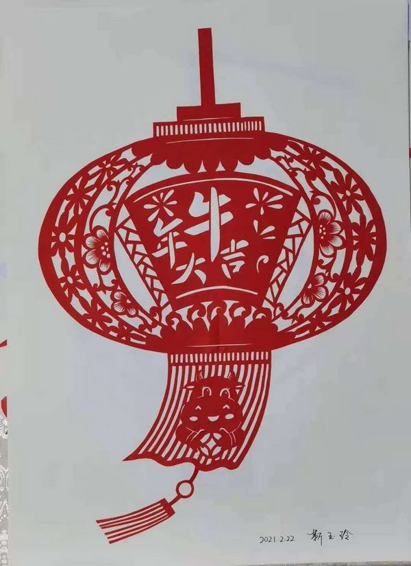 “咔嚓咔嚓”,一把剪刀、一张红纸,随着巧手飞舞,一幅幅生动的花灯图案便跃然纸上。在剪纸达人靳玉芳家中,她和学生围坐在桌旁,忙着裁剪花灯。作为市非物质文化遗产剪纸项目传承人,靳玉芳将剪纸艺术带进了课堂,在孩子心中生根发芽。为表达对新春的美好祝愿,靳玉芳还运用多种吉祥图案和裁剪手法,创作完成了《福牛迎春》系列主题作品。