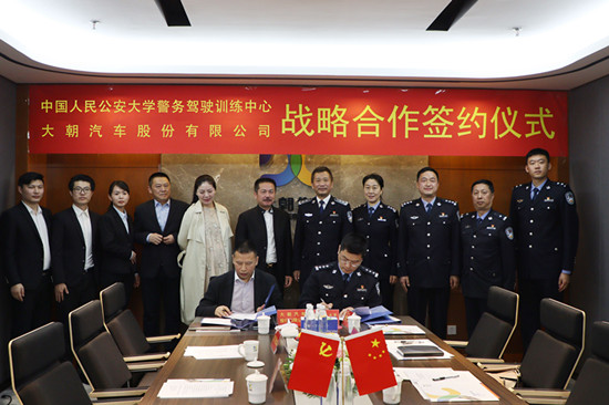 中国人民公安大学警务驾驶训练中心,与大朝汽车股份有限公司签署战略合作协议。