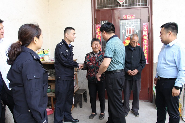 随后,一行人员到十里铺社区四组,走访慰问了当地困难户80岁高龄的郭好赏、李新景夫妇,并送去了慰问品米、面、油和牛奶。禁毒支队副支队长张金锋与困难户进行了亲切的交流,详细了解他们的身体状况、生活状况,并鼓励他们要坚定信心,努力克服生活中遇到的困难,要坚信在党委和政府的帮助下,一定会走出困境,过上更加幸福的生活。表示要与村委携手,时刻把困难群众的冷暖放在心上,尽所能为群众排忧解难,帮助他们顺利渡过难关、走出困境。通过这次社区服务活动,使辖区群众感受到党的温暖,提升了公安民警在人民心中的满意度。