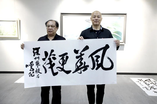 各位领导和专家在考察期间,为优雅的学校环境、厚重的艺术气息和强烈的艺术氛围所感染,他们兴致盎然挥毫泼墨,即兴为深圳艺术学校题写了“艺苑奇葩”、“风华更茂”、“风云三尺剑花鸟一床书”的赠言,寄语学校能在未来的建设中百尺竿头、更进一步!