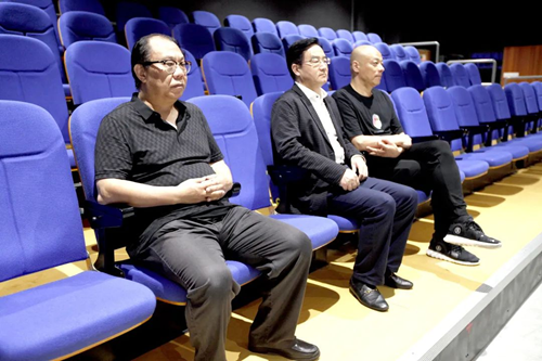 李瑞琦主任、周鹏飞教授等一行在黄启成校长陪同下首先前往黑匣子剧场看望了在暑期仍然坚持排练的部分音乐舞蹈师生,并一同观看审查了部分节目。