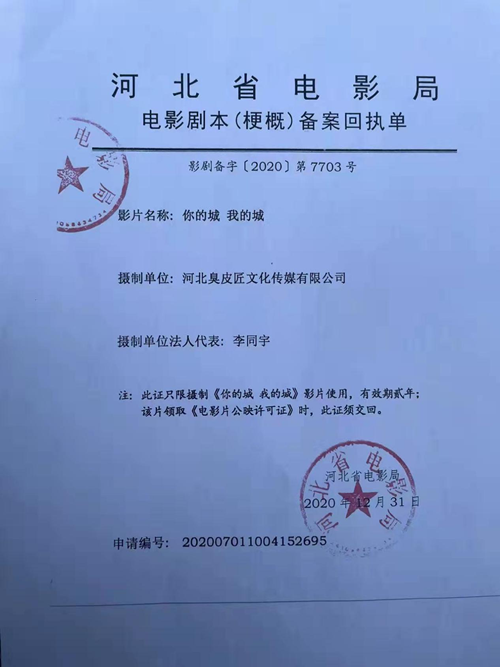 2020年由武安市影视家协会骨干成员组成的编剧小组,创作了电影剧本《你的城,我的城》,并取得河北省电影局拍摄许可证,由国家电影局公示备案立项:影剧备字{2020}第7703号。2021年,协会编剧小组参与了电影《梁沟保卫战》的剧本创作和报批,并取得河北省电影局拍摄许可证,由国家电影局公示备案立项:影剧备字{2021}第1431号。剧本得到了八一电影制片厂、西安电影制片厂、长春电影制片厂和总后影视文化中心的极大认可,正在洽谈电影合作事宜。目前该片正在面向全国筹措资金,目标是把《梁沟保卫战》这部电影拍摄成《战狼2》、《八佰》、《长津湖》一样的票房、口碑双丰收的战争大片。