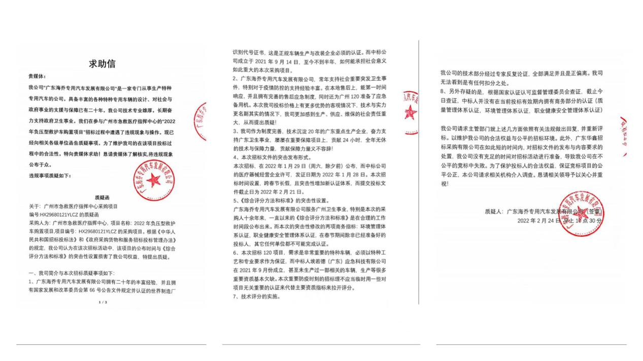 本社将对《广东省广州市:医疗急救中心“120救护车采购项目”招标被质疑》事件,持续关注并跟踪报道。 来源:中国三农观察网