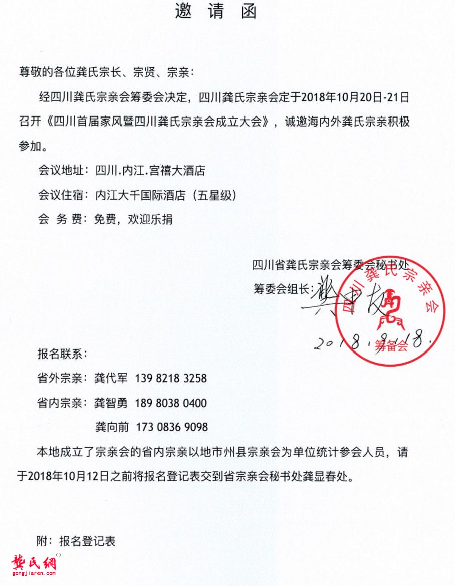 在此,我们诚挚邀请各地龚氏宗亲参加“四川首届家风论坛暨四川龚氏宗亲会成立大会”,期待各地龚氏宗亲莅临并指导工作!你们的到来,大会更加精彩。