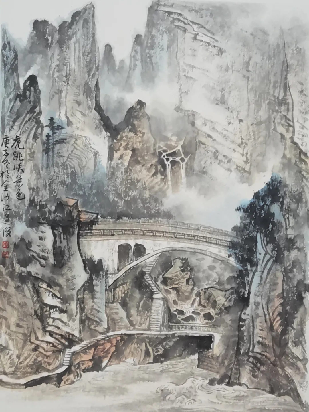 自20世纪90年代初,开始对新疆广袤的瀚海戈壁、自然山川、风物人情、天山大漠、丝绸古道进行了深入探索研究。历经二十几年二十几次走进新疆,在文化是传承、艺术于创造中创立了“天山山水画”的独特风格,开拓了中国山水画创作的新领域。追求悲壮之美、苍凉之美、雄强之美、阳刚之美。以大漠为纸、胡杨为笔,以炽热的红色激情,泼洒生命的旋律,谱写天的大象、山的风骨,奏响道法自然、天人合一的乐章。