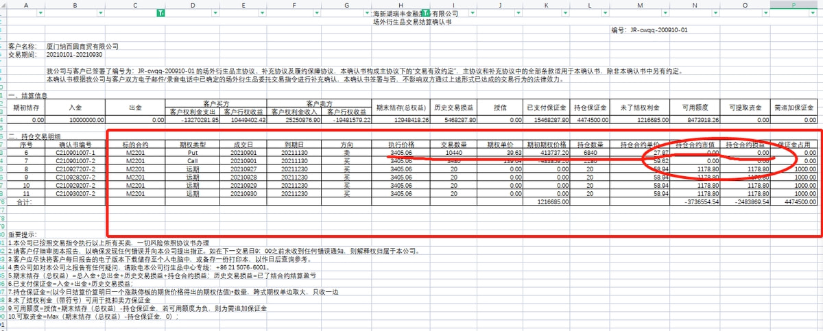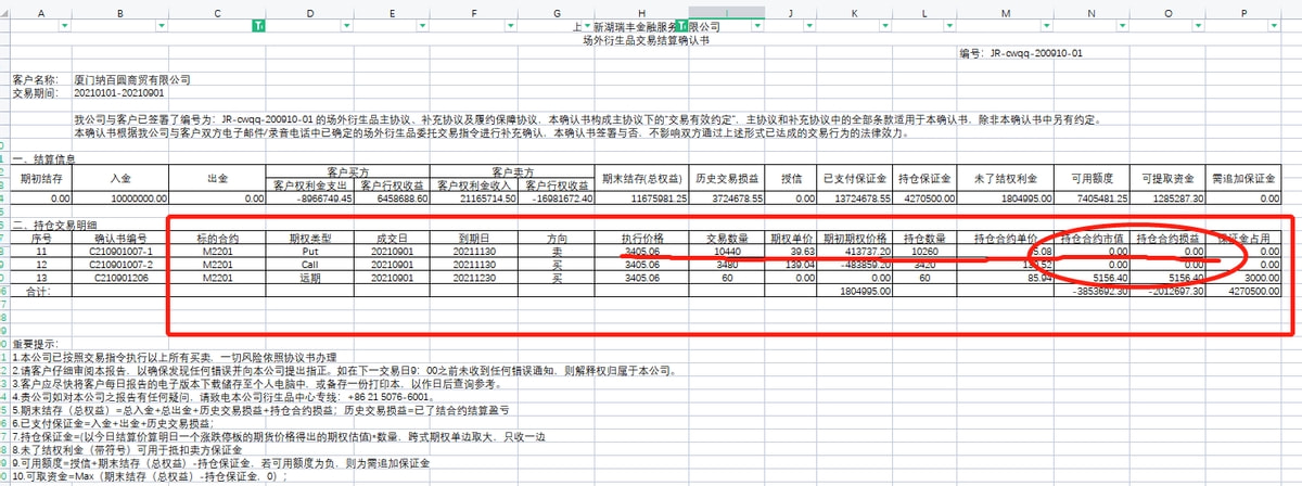 2021年9月1日新湖瑞丰提交的日报表能体现开仓时未释放期权浮动盈亏不计算