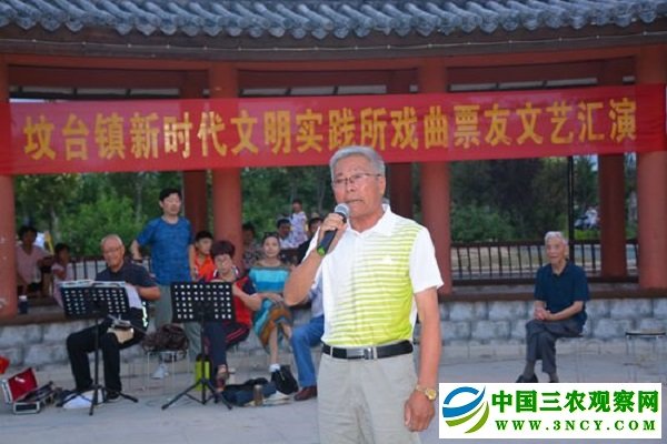 中国三农观察网通讯员闫健民报道)6月16日晚,一场别开生面的晚会在安徽省太和县坟台镇太子湖公园上演。由太和县老年大学京剧班、坟台镇新时代文明实践所、坟台镇综合文化站联合举办的文艺汇演在这里举行。