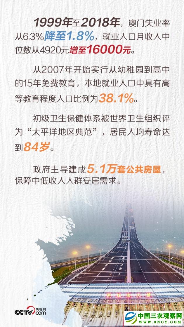 回归祖国大家庭后,澳门的民生福利水平“芝麻开花节节高”。截至2018年底,澳门社保基金资产总值增加至近800亿元(澳门元,下同)。居民养老金2019年调升至每月3630元。再加上救济和福利体系日益健全,澳门人民已经越来越多地享受到了国家发展带来的红利。