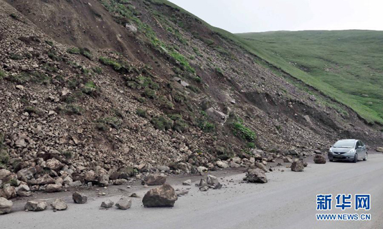 地震造成218国道新疆和静县一处路段发生山体滑坡(6月30日摄)。据国家地震台网测定,当日5时7分,新疆伊犁哈萨克自治州新源县、巴音郭楞蒙古自治州和静县交界处发生6.6级地震。从目前初步调查的情况看,此次地震造成部分地区居民房屋倒塌、开裂,一些山区道路出现塌方和滑坡。新华社发