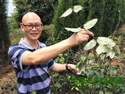 原隆回县政协副主席夏亦中介绍手中的灰毡毛忍冬(隆回金银花)。