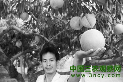 眼下,正值深州蜜桃成熟的季节,河北深州市店上村桃农刘赛培育出高度11厘米、直径12厘米、周长41厘米、重达885克的“桃王”,打破了当地蜜桃栽培史上单果重量纪录。深州蜜桃驰名中外,有2000多年的栽培历史。今年33岁的刘赛,有10多年蜜桃栽培经验,他在传统栽培技术的基础上,引进绿色、无公害新型管理模式,培育的蜜桃远近闻名。图为刘赛将“桃王”与其他蜜桃进行对比。本报记者冯雷通讯员高占峰摄