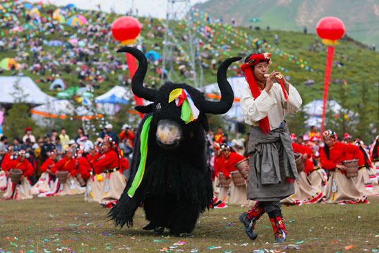 7月24日,第十三届“中国·九色甘南‘香巴拉’旅游艺术节”在甘肃省甘南藏族自治州当周草原拉开帷幕。据悉,“香巴拉”为藏语“人间仙境”之意。此次为期两天的旅游节将举行旅游节大型文艺表演、旅游文化产品展、民族体育运动会、特色篝火晚会、经贸洽谈会等活动。 新华网(吉合塔 摄)