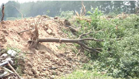 随后记者在事发现场见到了梅山村承包鱼塘的业主高农林及他的大女婿,高农林告诉记者镇里带挖掘机来人毁他的景观树的时候他当时不在现场后来听说了他们就过去了,他告诉记者当时开挖掘机的是他们村主任的儿子,现场除了镇里和相关部门的人根本没有看到所谓的施工队伍,他们也没有接到对他的树木强制执行的书面和口头通知,高农林告诉记者他承包村集体的鱼塘及田埂二十多年了,协议明年2月才到期,前段时间他们村还给他出了保证书,保证在没有协商好树木问题不会施工,保证书还盖了村委会的公章。高农林气愤的说,没想到他们没有通知就把他价值9.28万(高找评估公司评出的价格)的树木给破坏了,并把他老伴打伤住进了医院。