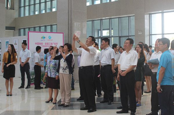 姚晓东在参观优质广告作品展时兴奋地摁下手机快门