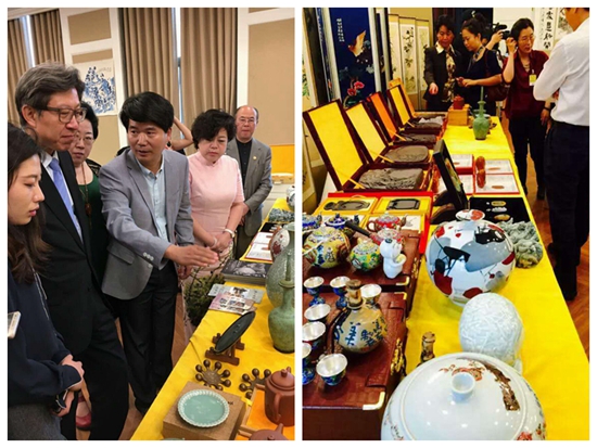 组委会会常务副秘书长赵苹代表中华炎黄文化研究会砚文化联合会向韩国国会捐赠飞天砚和蛟龙砚