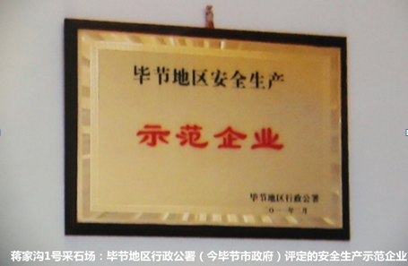 2011年2月,蒋家沟1号采石场被毕节地区行政公署评定为“毕节地区安全生产示范企业”。