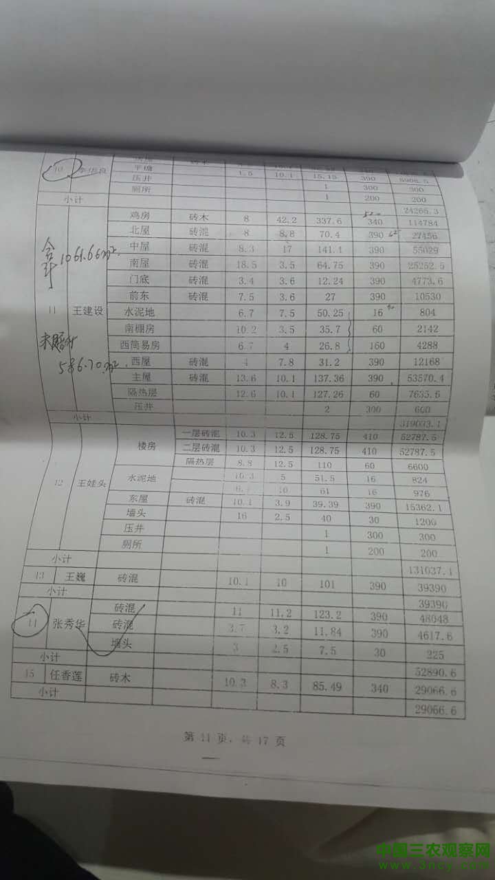 村民王建设对媒体说,他家的房子建得早,大概在20年左右了,面积有住房137平米及养鸡房337平米及北屋、中屋、南屋、前东房586平米共计1061,66平方,在村里属于地地道道的老房子。两年前,河南建业项目才开始征用他们十八里村里十几家的房屋,不知为什么,他家本来是地地道道的老房子,乡村两级统计资料时,却给他家的住房性质打上了全新的标志。结果在补偿时,他家的住房137平米及养鸡房337平米的补偿30多万给了,剩余的北屋、中屋、南屋、前东房586平米没给补偿,理由是没补偿的部分是新建筑,不在补偿之列。王建设家老房子的所有面积和其他村民家的一起,乡政府都分别都做了公示,乡政府及有关单位的补偿明细上也都有。更令王建设不服的是,十几户群众中,比他家建房建的早的也补偿了,比他家建的晚的也补偿了,好多村民家打着全新标志的也给补偿了,唯独他家的给标志成新建的老房子不给补偿。没给补偿的原因是他给现任的村干部有个人矛盾。他怀疑是乡村两级干部以此对他打击报复。