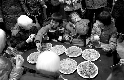 收养的孩子被送往开封市福利院后,吃上了晚餐。本版图片本报记者王苡萱摄