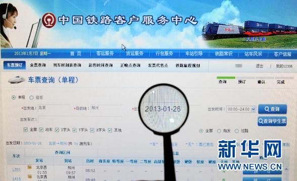 旅客可以通过互联网或电话订购春运火车票(1月7日摄)。 1月7日起,2013年春运火车票开始发售。2013年春运自1月26日起至3月6日止,为期40天,其中,节前15天,节后25天。 新华社记者 李鑫 摄