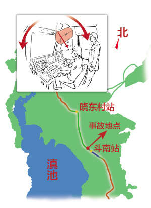 昨天上午9点09分,昆明地铁首期工程南段列车在空载试运行过程中发生意外,列车(往昆明)上行至离斗南站约500米段时发生脱轨,导致司机室暖风装置坠落,造成值班司机一人当场死亡,一人受轻伤。