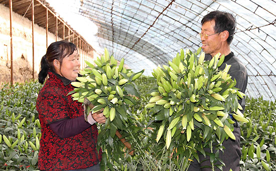 近年来,河北省平泉县利用毗邻北京、天津、内蒙古的独特地理优势,把花卉种植作为推动农村经济发展的重要产业,探索发展“合作社(公司)+基地+农户”的新型产业化模式,增强了农民的种植积极性和抗市场风险能力,促进农民增收致富。目前,平泉县建成各类花卉合作社(公司)12家,年创产值3亿多元。 新华社发(王晓 摄)