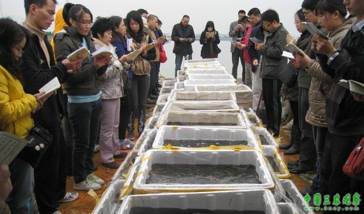 中国三农观察网讯 (记者王金江 刘世超 )6月18日上午,河北张家口市沽源县沽水福源度假村的河岸边已是人声鼎沸、热闹非凡,2013年生态景区放生活动正在这里举行10000尾小鱼以及当地村民养殖保护下来的龟和青蛙等放生物种,在大家的相互传递下,被放入河中。看着一条条畅游在河水里的鱼儿。乌龟和青蛙,河岸上立即响起了欢呼声。